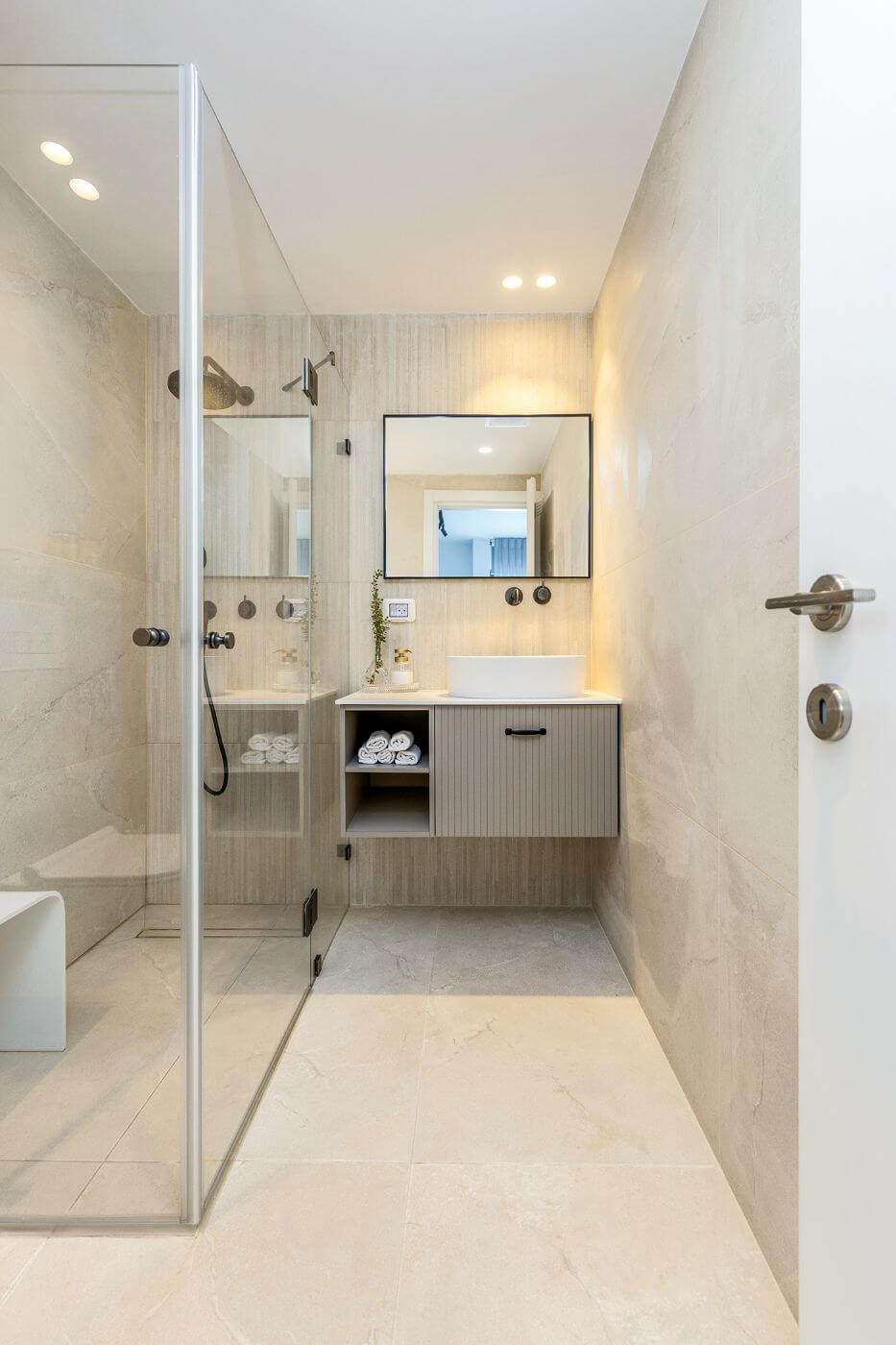 הקונספט העיצובי התמקד בקווים נקיים, צבעים בהירים ונגיעות כחולות בהשראת הים. כדי ליצור מראה יוקרתי שילבתי בין חומרים וטקסטורות שהכניסו עומק ועניין ויצרו דירה שנעים לשהות בה.