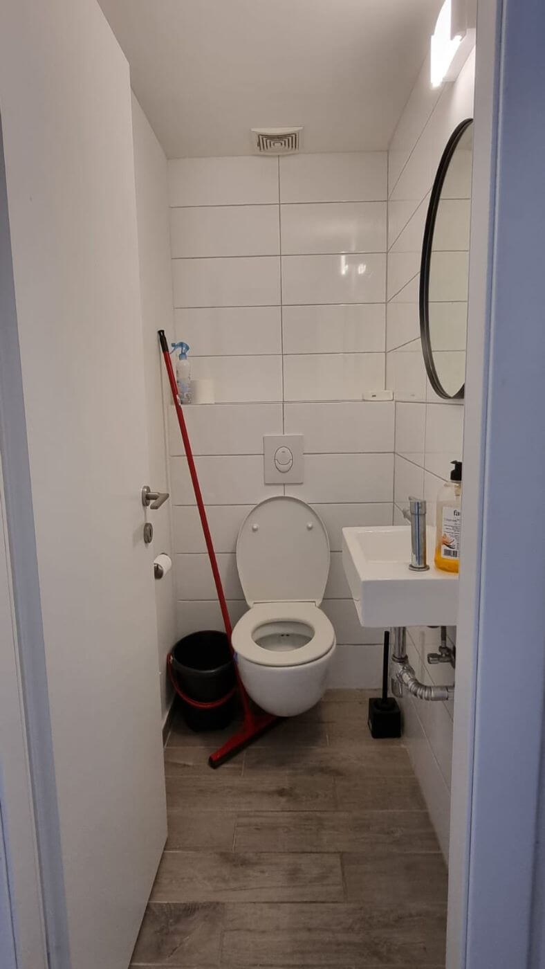 חדר הרחצה שופץ מהיסוד ושירותי האורחים קיבל עיצוב לא שגרתי שמושך לא מעט תשומת לב.